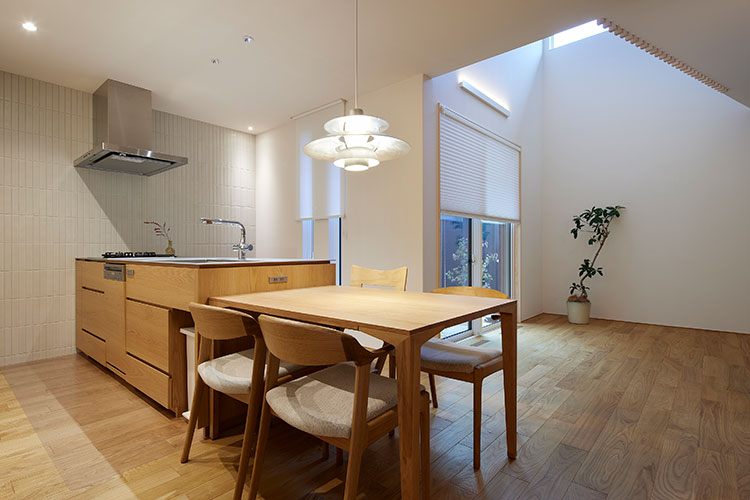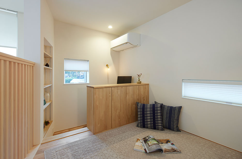 - 「以前の住まいではカーテンも使ってきましたが、どんなに明るい色を選んでも少し圧迫感がありました。その点、メカモノはシンプルな佇まいで空間によくなじみます。とくに、上げたときに窓まわりがすっきり見えるのが魅力です。現代の和で仕上げたわが家にもしっくりくると思い、メカモノで統一しました」