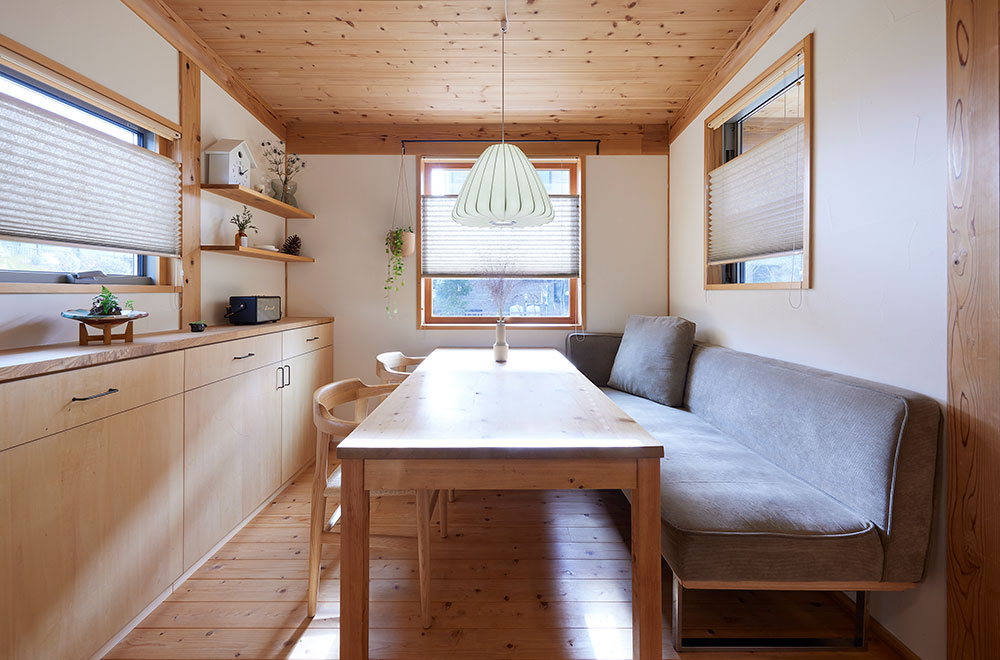 おこもり感のあるダイニングは3面に窓があり、自然光が食卓を明るく照らします。一方、窓が多いからこそ、気になる場面もありました。