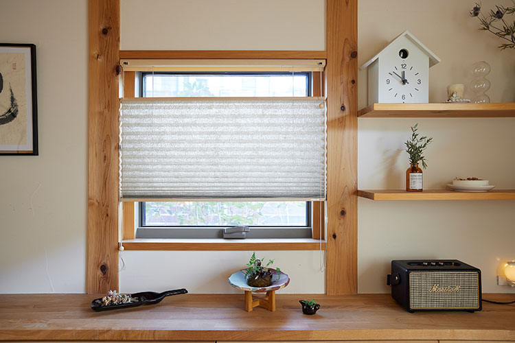 そこで、Mさんが選んだのは、プリーツスクリーン「もなみ」のアップダウンスタイル。上も下も開けられるスタイルで、目線の高さはしっかりと隠しながら、光や風を採り入れられるのが特長です。