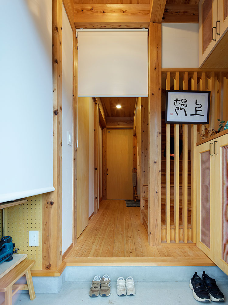 家の中と外をつなぐ玄関まわりにも、小さなお子さんがいるM邸ならではの工夫がありました。
