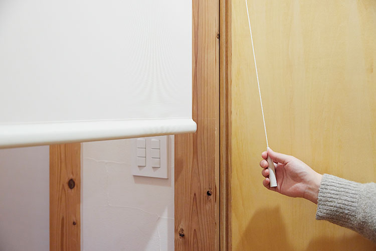 操作コードを引いた分、スクリーンが下がり、少し引くとスクリーンが自動的に巻き上がる