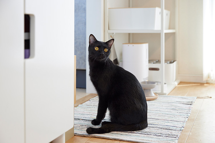 黒猫のクウくん。好奇心旺盛で撮影のカメラにも興味津々。モデルとして活躍してくれました。