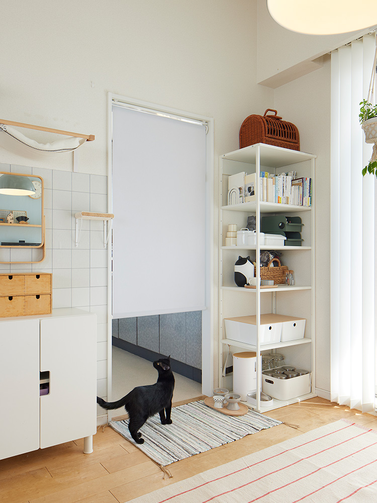 1台で2つのスクリーンを個別に操作できる「セパレートタイプ」で、キャットタワーの周辺だけ開けられるようにしました。