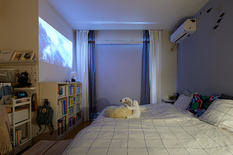 - プロジェクターで映画や動画を楽しんだり、リラックスできる大人なくつろぎ空間となりました。