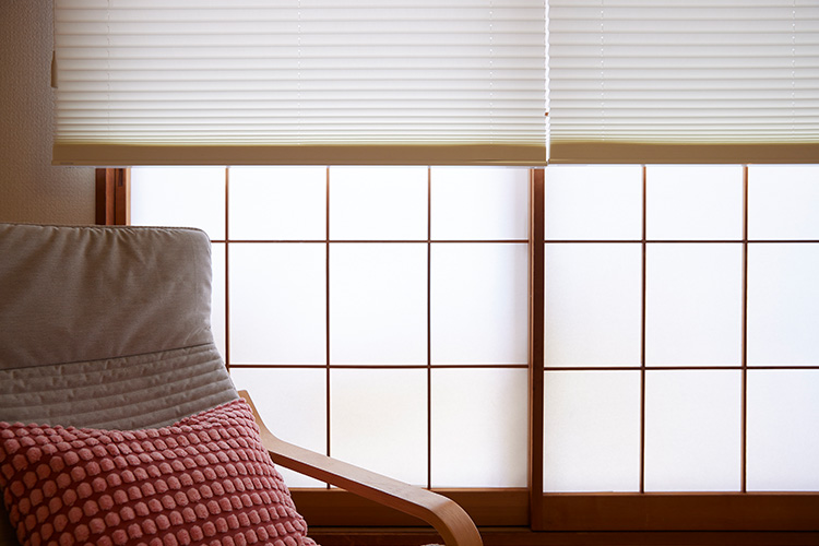 プリーツの直線的なラインが障子とも好相性。和の良さも残しつつ、ミニマルで現代的な雰囲気に仕上げます。