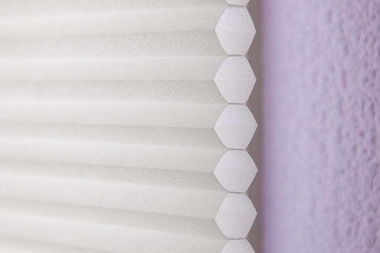 - 省エネ効果抜群の蜂の巣状のスクリーン。断面はD 型のセルになっており、重さがかかっても形状の変化が少なく、室内の美しいプリーツラインを保ちます。