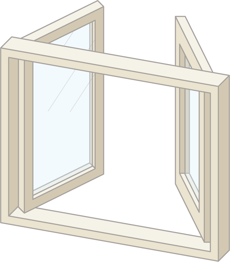 ・滑り出し窓の開き方は2種類。サッシ枠にそって垂直開く仕様をよこ滑り出し窓。水平に開く仕様をたて滑り出し窓という。