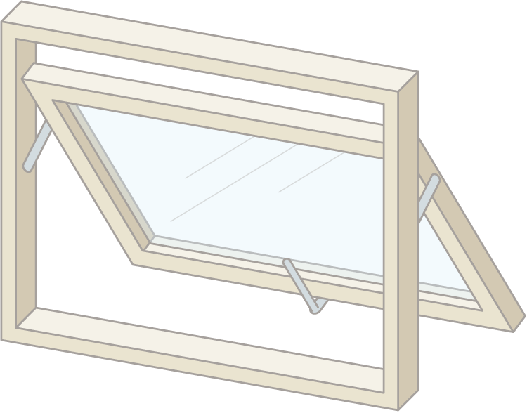 腰の高さにあるものを腰窓、あるいは腰高窓といいます。開き方のバリエーションが多いのが特徴です。内開きタイプでなければ、ほとんどのブラインドやスクリーンが設置可能です。部屋の用途に合わせて選びましょう。