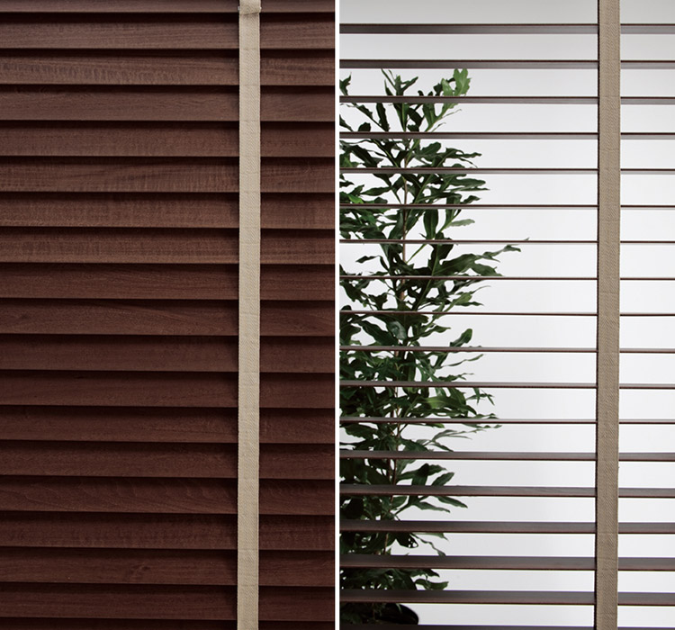 ウッドブラインドの最大の魅力は、天然木の美しさです。木目の表情はもちろん、触れたときのぬくもりや質感、そしてそれ自体が放つ高級感。設置するだけで、上質な空間に仕上がります。