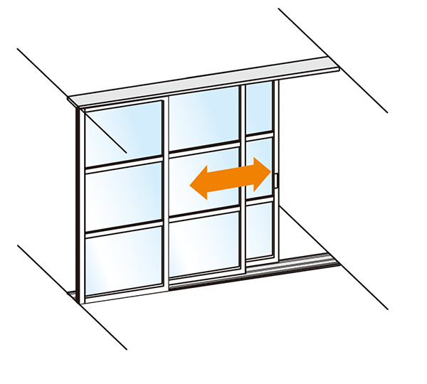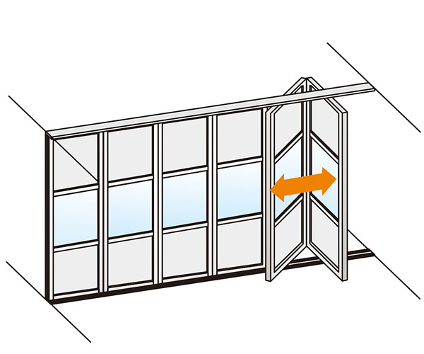 スリムなパネルは格納時のスペースを最低限に抑え、格納側のパネルは開き戸として出入りできます。