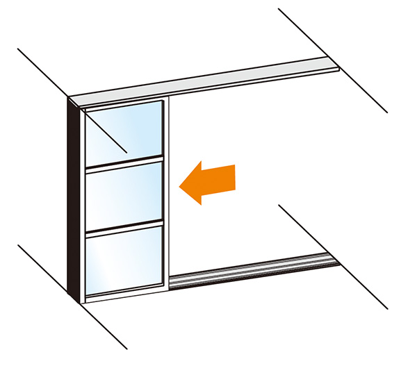 勢いよくパネルを動かしても、閉じる手前でゆっくりと静かに閉まるソフトクローズ機能をオプションで用意。指の挟み込みやパネルの衝突音を防止します。