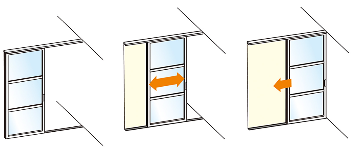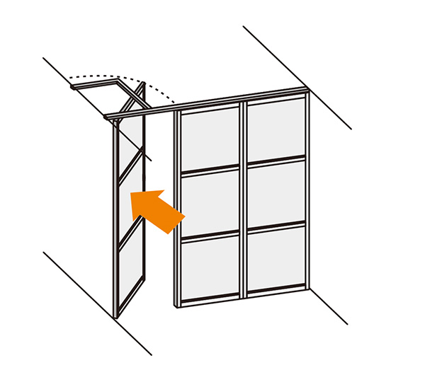 「引戸」「折れ戸」の2つの機能が便利な折れ戸タイプ■開閉:引戸※シングルレールを除く