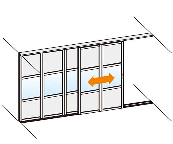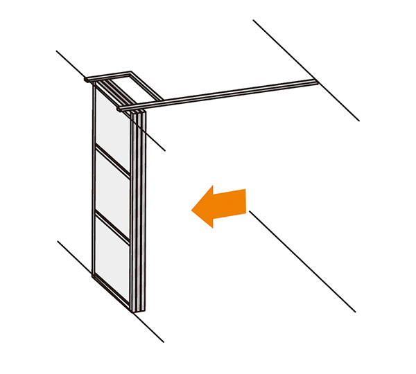 使用用途に合わせて、簡単に部屋を間仕切ったり、オープンにしたりすることができる格納レールタイプ。