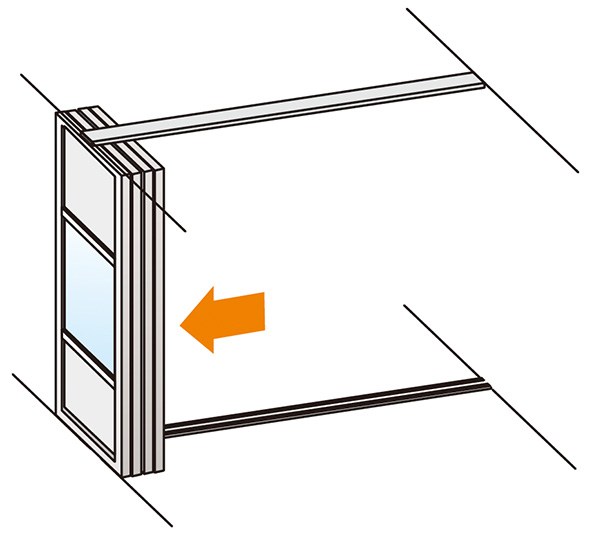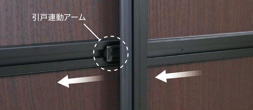 フラットタイプのパネルには、独自の引戸連動アームを採用。先頭パネルを開閉することにより他のパネルも連動して開閉します。