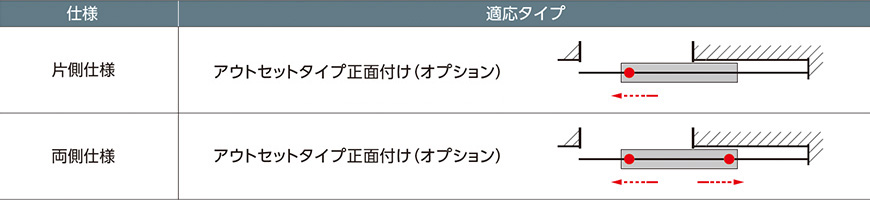 アウトセットタイプ正面付けに、ソフトクローズ機能付き(オプション)もお選びいただけます。