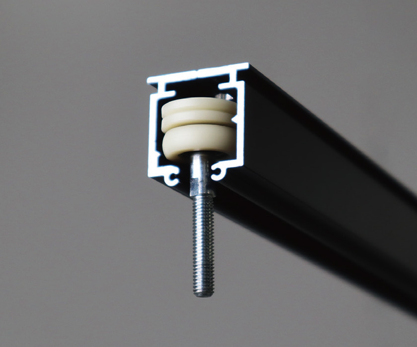 シャレードシリーズで一番スリムなハンガーレールを採用。スッキリとした見た目は、お部屋のインテリアを損なわず、スタイリッシュな空間を創り出します。また走行音が静かな2段ランナーを採用することで、直線はもちろんL型、T型の分岐にも対応します。