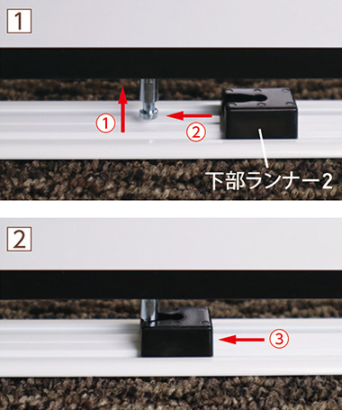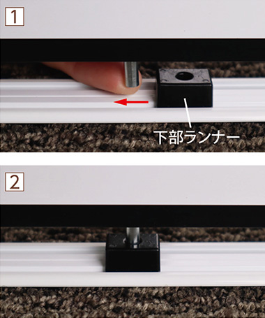 ※③はドライバー等の工具を用いて下部ランナー2の溝がない側から押し込んでください。