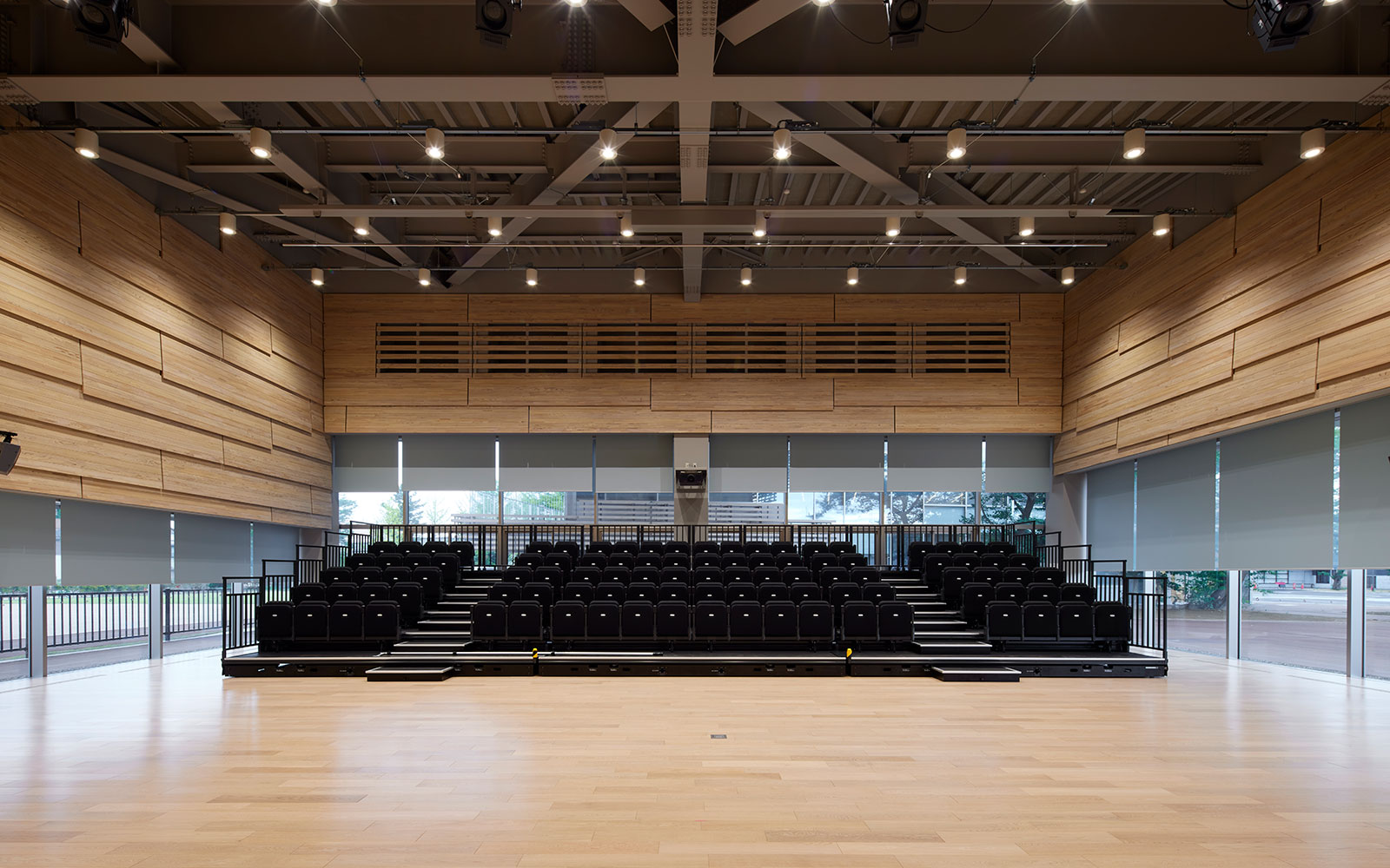 イベントホールなどでは複数のロールスクリーンを一括で制御できるシステムが求められる