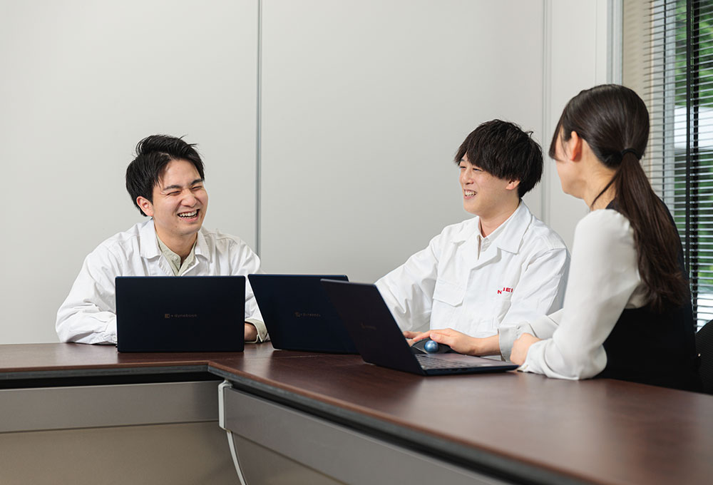 社内SEを募集していて、未経験可だったことが興味をもったきっかけです。調べていく中で、創業80年以上の歴史がある老舗メーカーであること、業界大手であることなどがわかり、安定的に働けそうだったので志望しました。会社を知ってからは、ニチベイの商品が世の中にたくさんあることにも気づき、社会の役に立つ商品を作っているところも志望した理由の一つです。