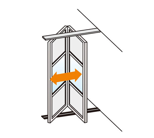 「引戸」「折れ戸」の2つの機能が便利な折れ戸タイプ■開閉:引戸※シングルレールを除く