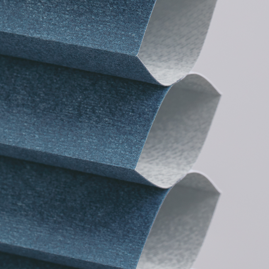 D型セルなので室内側と屋外側でプリーツの山の高さが違い、室内側のプリーツを保ちます。